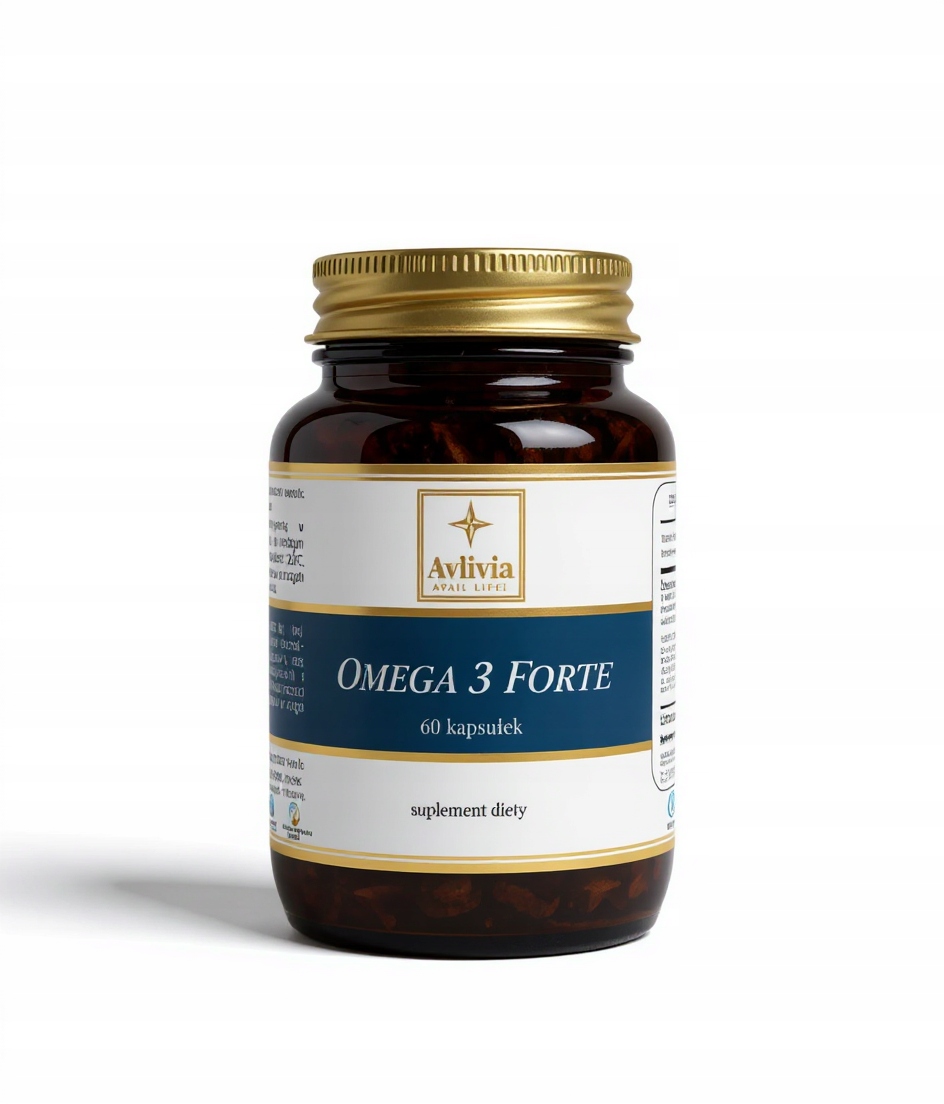 Avlivia Omega 3 Forte to wysoko skoncentrowany suplement diety zawierający naturalny olej rybi pozyskiwany z anchovy (sardeli peruwiańskiej), oczyszczony metodą destylacji molekularnej. Każda kapsułka dostarcza 750 mg kwasów omega-3, w tym EPA 500 mg i DHA 250 mg – w precyzyjnie dobranej proporcji 2 : 1.