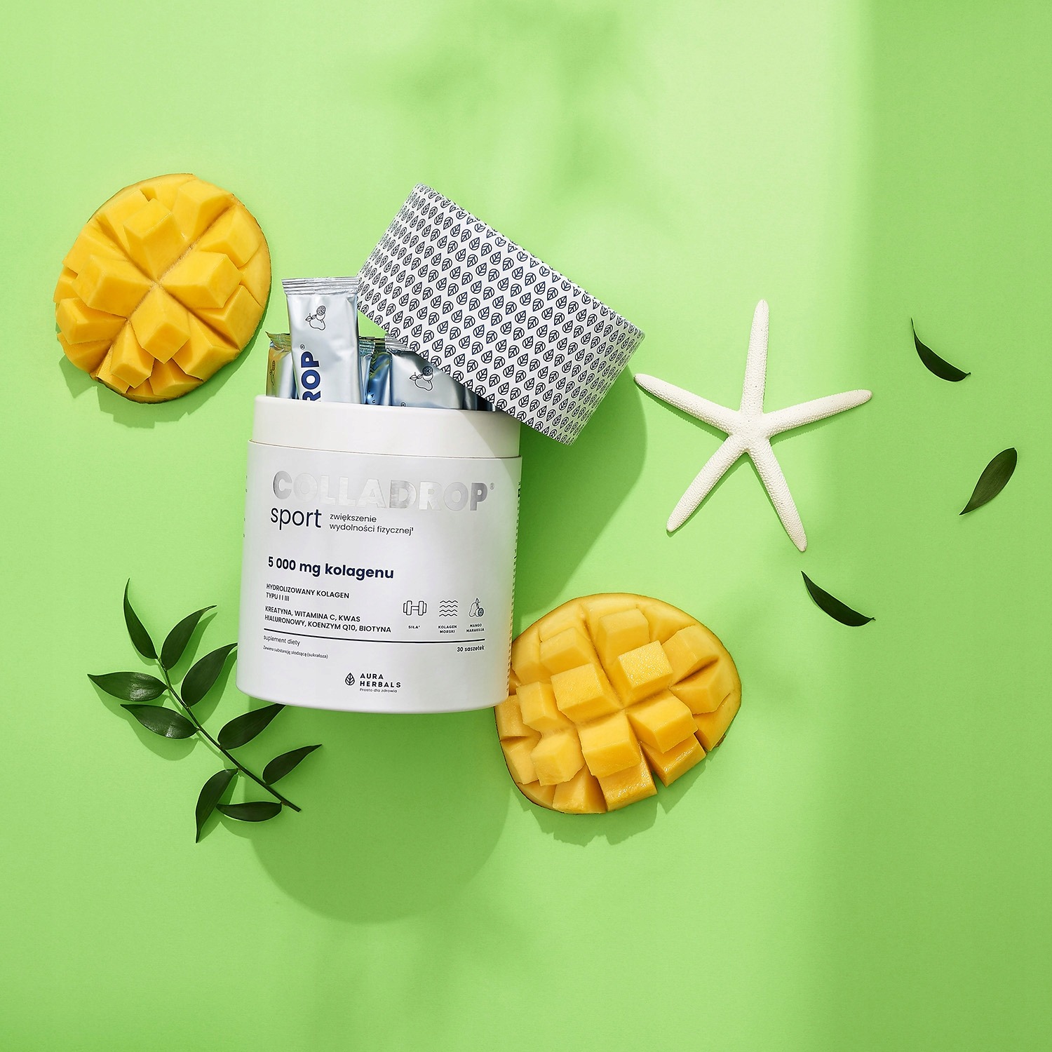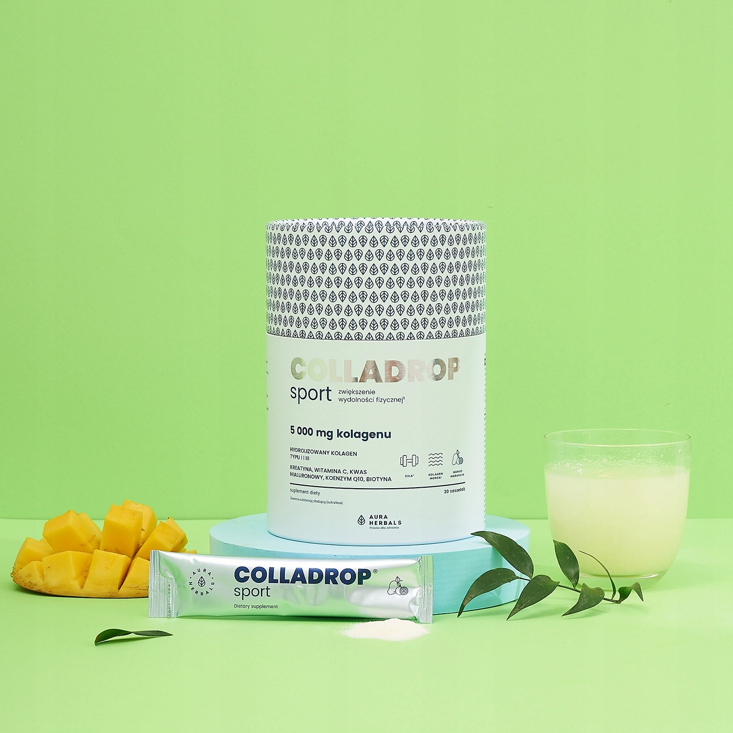 Colladrop Sport kolagen morski 5000 mg to suplement diety w wygodnych saszetkach. Zawiera wysokiej jakości hydrolizowany kolagen morski, który jest dobrze przyswajalny.