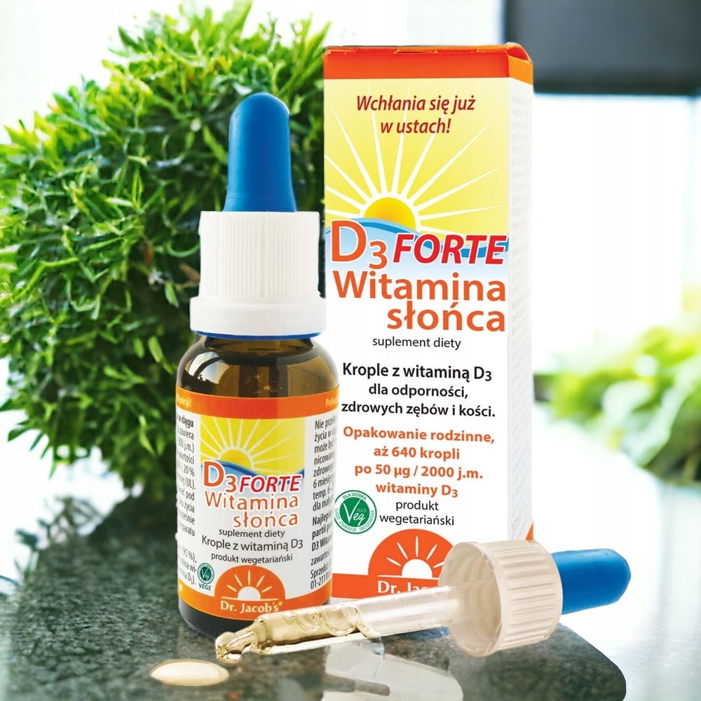 Dr. Jacob’s D3 Forte krople to wysokiej jakości suplement diety zawierający witaminę D3 w formie płynnej.